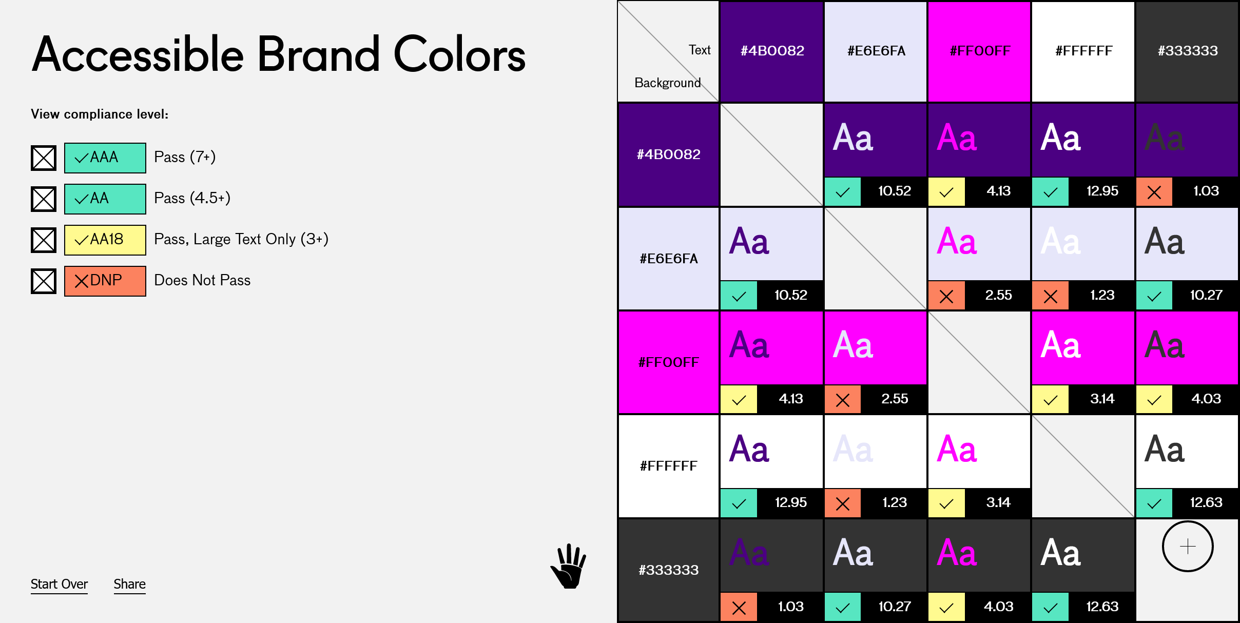 (Hint: WCAG AA requires color contrast ratio of 4.5:1)